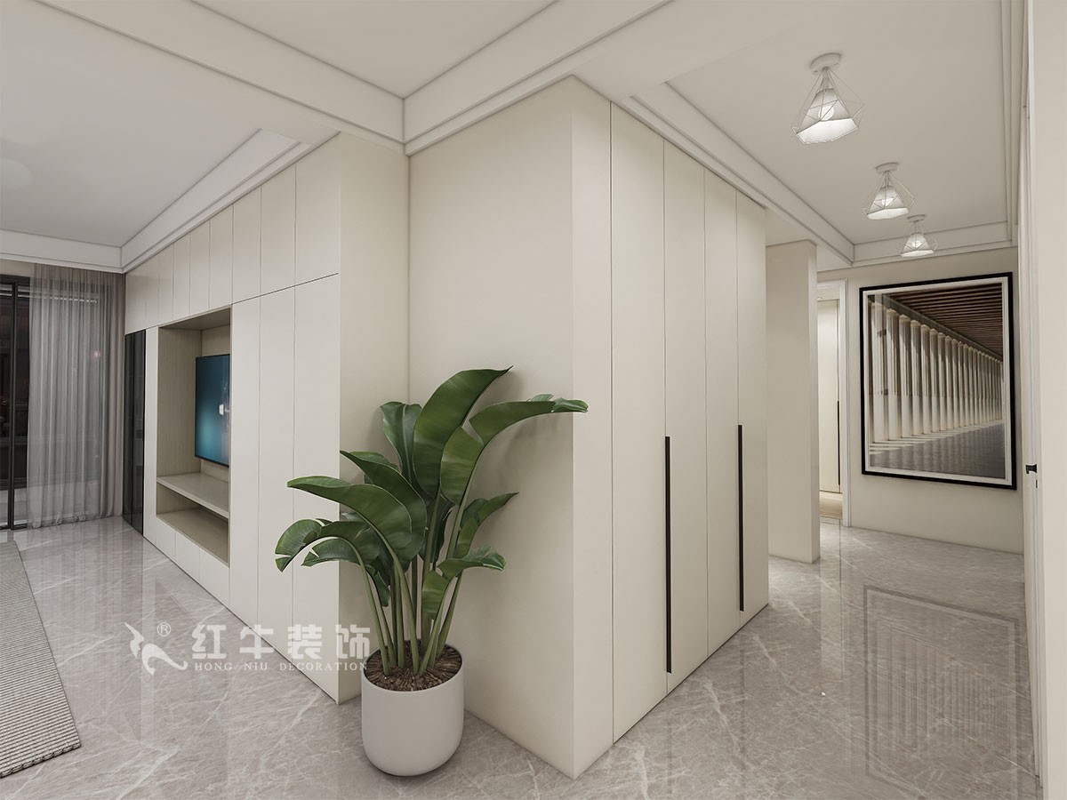 一家三口居住,女業(yè)主對裝修希望比較簡單大氣,希望未來的房子簡潔、實用、大氣,最終確定了現(xiàn)代風。而本案在設計時其特色是將設計的元素、色彩、照明、原材料簡化到最少程度,但是對材料的舒適度要求很高。因此,現(xiàn)代的空間設計非常含蓄,往往能起到以少勝多、以簡勝繁的效果。藝術(shù)創(chuàng)意宜簡不宜繁,宜藏不宜顯。