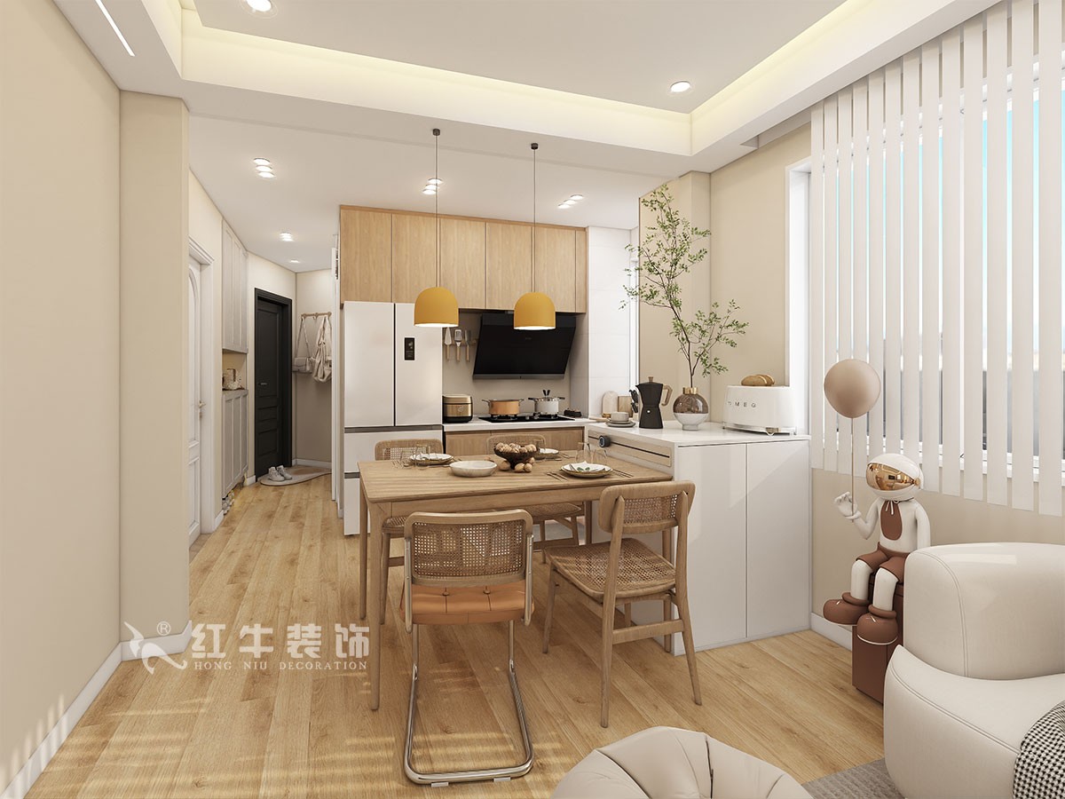 入戶門廳增加鞋柜,增加入戶儲藏??蛷d的搭配以定制的原木收納柜為主,格局之內(nèi)都采用天然木質(zhì)家具,最柔和的顏色,最真實的紋理,搭配球形吊燈,打造出舒適優(yōu)雅的就餐環(huán)境。當(dāng)奶油色的純凈與灰色的安逸相遇,空間迸發(fā)出柔和溫暖的氣息,恰到好處地構(gòu)建出治愈、舒適的家居氛圍。