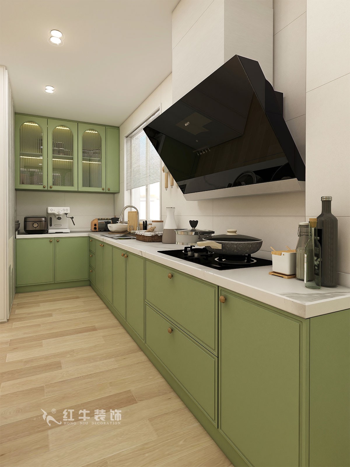 綠色是屬于夏天的顏色,這是一個(gè)一眼看上去就能感覺到清涼的空間。廚房不是繁忙生活中的家庭擺設(shè),亦或機(jī)械式的操作間,它應(yīng)是能讓人們產(chǎn)生情感與記憶的地方,與朋友、家人一起分享美好的新型空間。所謂居住的使命,不只是吃一頓親手做的家飯,亦或睡一個(gè)安心的好覺。徹底的放松和休憩是當(dāng)代生活必不可少的環(huán)節(jié)。美好的居所能夠成為人們的充電器,為每一次重新出發(fā)積蓄活力。