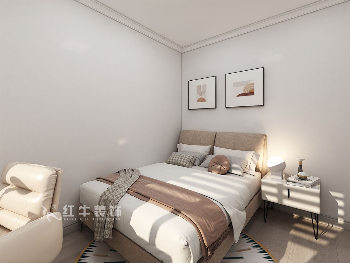 此案主要是養(yǎng)老居住,在舒適度上要求比較高,臥室是整套房子中最私人也是最體現(xiàn)出溫馨休閑感的空間,在設(shè)計(jì)時(shí)體現(xiàn)出靜謐舒適的感覺(jué),并且與其他空間明顯的區(qū)別。改變廚房門洞的位置,廚房光線就能更好的進(jìn)到門廳,衛(wèi)生間也能單獨(dú)一個(gè)區(qū)域。然后又把兩個(gè)房間的門換了位置,把門洞口的面積節(jié)省下來(lái),也顯得更規(guī)整。整體現(xiàn)代簡(jiǎn)約風(fēng)格的設(shè)計(jì),搭配上顯眼的綠色植物讓整個(gè)空間呈現(xiàn)出一種生機(jī)勃勃的自然美。