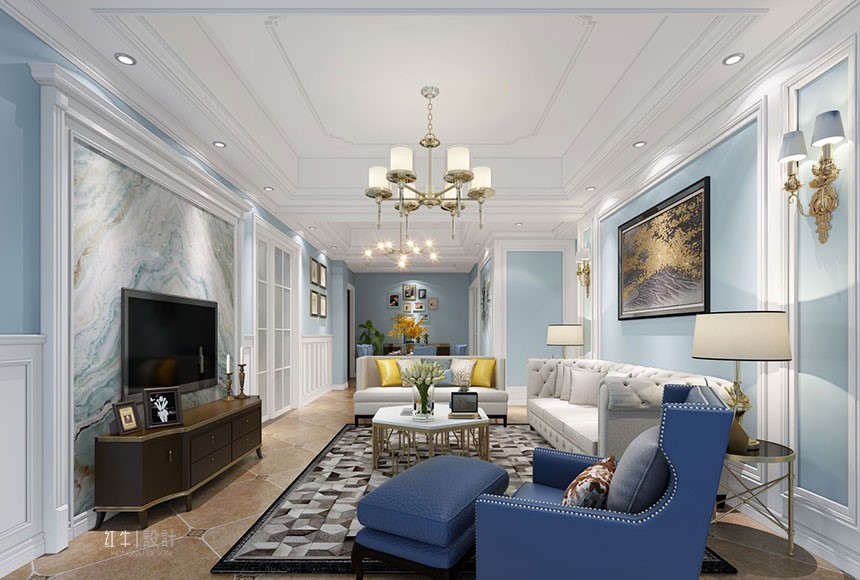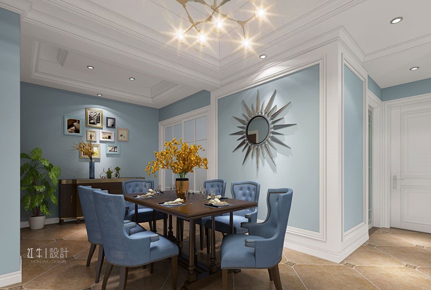 戶型屬于面積135平方,業(yè)主想在忙忙碌碌的一天之后,回到自己溫馨的屋子總是尋找一個安靜的角落享受家庭生活的溫馨,城市的五顏六色的生活迷惑了我們的眼睛,讓我們在偌大的城市迷失了方向,只有那么一個安靜的角落屬于我們,那就是我們的家。房間的室內(nèi)以米黃色為主,但處處透露出家的溫馨??蛷d,餐廳,主色調(diào)為淡色,地面采用實(shí)木地板為主。此設(shè)計(jì)藍(lán)色調(diào)歐式家居風(fēng)格的這些元素也正好迎合了時下的文化資產(chǎn)者對生活方式的需求,即:有文化感、有貴氣感,還不能缺乏自在感與情調(diào)感