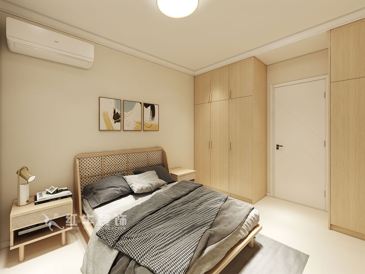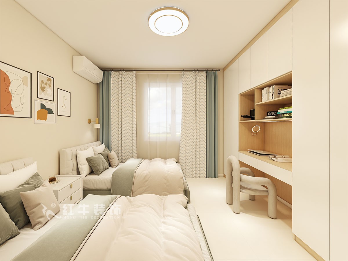 本案客戶一家三代人,大體結(jié)構(gòu)不需要做過多改動(dòng),房間門洞移位,增加鞋柜空間。由于要跟小孩居住,次臥放置兩個(gè)獨(dú)立的床,床尾分開的衣柜保持收納獨(dú)立性。中間較大的桌子,滿足梳妝及小孩學(xué)習(xí)。洗衣機(jī)放置陽臺(tái),增加便捷性。