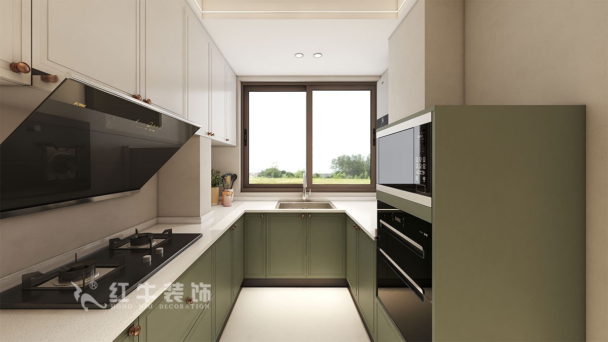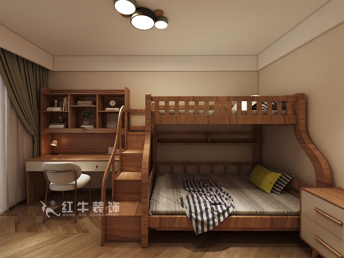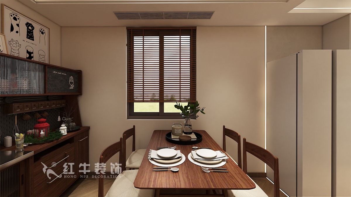 此案主要是四口之家居住裝修,在舒適度上要求比較高,臥室是整套房子中最私人也是最體現(xiàn)出溫馨休閑感的空間,在設計時體現(xiàn)出靜謐舒適的感覺,并且與其他空間明顯的區(qū)別。沒有設計沙發(fā),而是設計大的餐桌,又能當書桌用,又能起到分割空間的作用。廚房窗戶比較大光線就能更好的進到餐廳,衛(wèi)生間也能單獨一個區(qū)域。