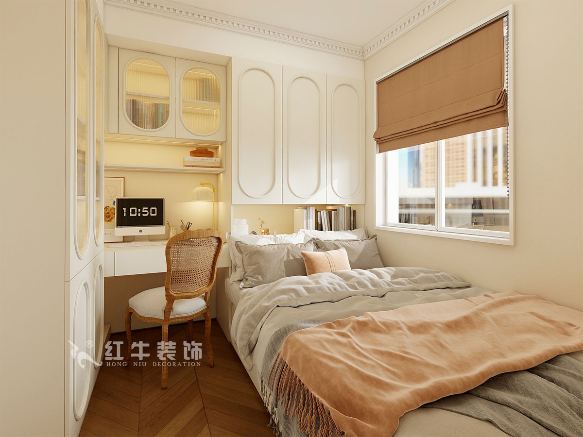 客餐廳為800*800米色地磚通鋪,主燈搭配3500K暖色光源,點(diǎn)綴燈帶,更加有氛圍感,墻面為溫潤(rùn)珠光色乳膠漆,頂面為奶白色乳膠漆,吊頂均為簡(jiǎn)單的雙眼皮吊頂,主臥室采用墻頂一體造型,柔化了轉(zhuǎn)角銜接處。衣柜與床頭柜的處理兼顧了實(shí)用性與趣味性,從細(xì)節(jié)處體現(xiàn)對(duì)生活品質(zhì)的追求與格調(diào)。