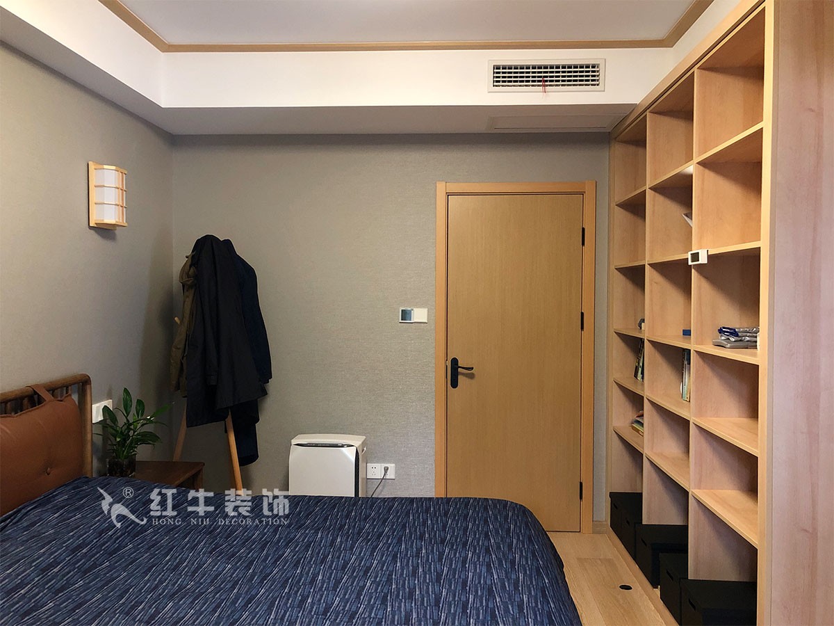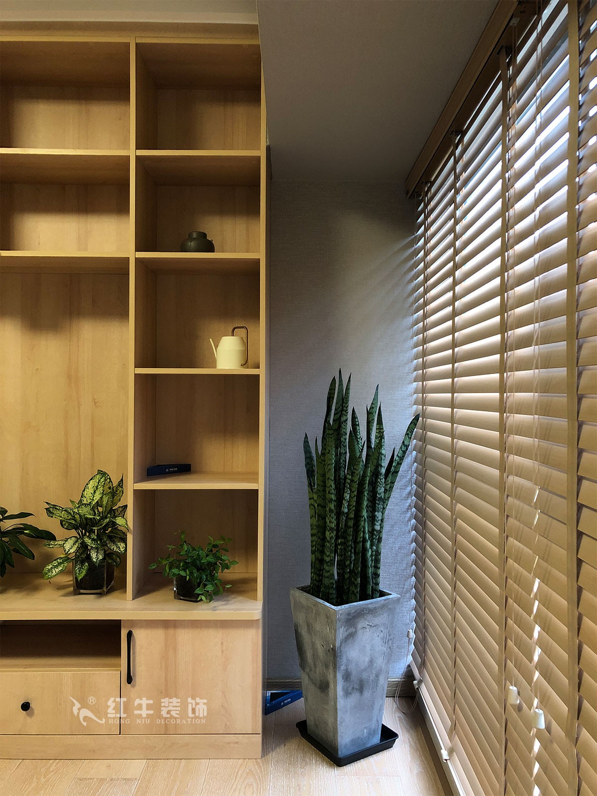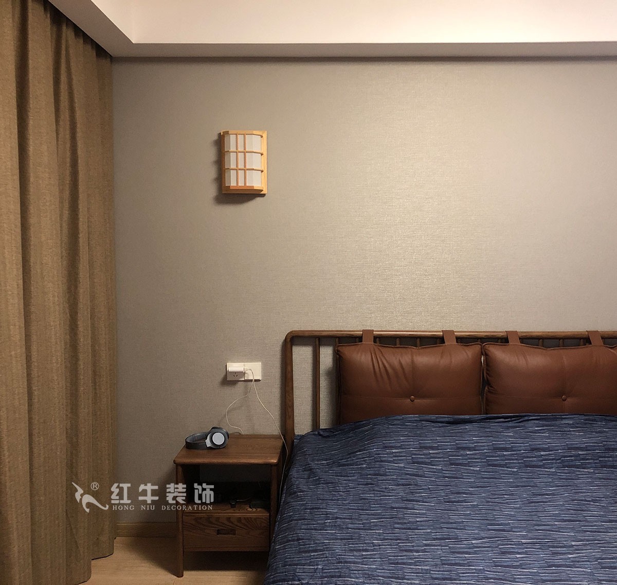 客餐廳色調(diào)清雅,休閑、隨性,又不失精致。電視背景墻依靠大面積開(kāi)放柜拓展儲(chǔ)物及裝飾功能,給居住者一個(gè)慵懶、明快的起居環(huán)境。臥室,依靠木質(zhì)家具本身的線條感,搭配同樣風(fēng)格的日式壁燈,給人以休閑自在的視覺(jué)感受。書(shū)房是辦公空間,整面墻全部以臥室同色的麻灰色墻布鋪貼,書(shū)桌旁轉(zhuǎn)角的飄窗給了原本不大的空間一個(gè)視覺(jué)的開(kāi)放性,心情也自然就舒緩很多。
