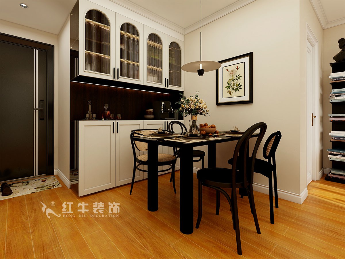 房子規(guī)整,沒有太多需要調(diào)整的結(jié)構(gòu),衛(wèi)生間的門方向的調(diào)整,增加了衛(wèi)生間功能的利用率,進門餐邊柜,鞋柜,功能齊全。