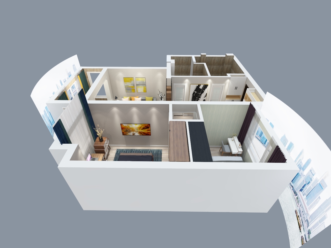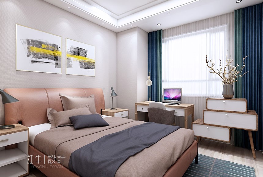 現(xiàn)代人的生活習(xí)性,喜歡簡(jiǎn)單明了不拖泥帶水的東西,都市的快節(jié)奏,讓人們希望在房子里找到家的溫馨??蛷d淺灰色的墻面讓人有安靜下來(lái)的體驗(yàn),木色的家具,加以搭配撞色的門板,不會(huì)有原始的呆板。木色的家具配以時(shí)尚的撞色,大膽又不失規(guī)矩,甚是合適。大量的留白,使空間更加時(shí)尚和安靜。房間木色的拼色和皮質(zhì)的碰撞,配以稍深的墻紙,溫暖又清新,讓主人能在疲憊一天的工作中,舒服的進(jìn)入夢(mèng)鄉(xiāng)。次臥朝北,運(yùn)用淺綠色的墻面,將空間帶進(jìn)自然,