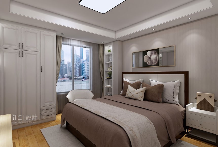 這間臥室配有陽臺,安裝的雙層窗簾使人能很方便地調(diào)整出想要的采光效果或隱私空間。