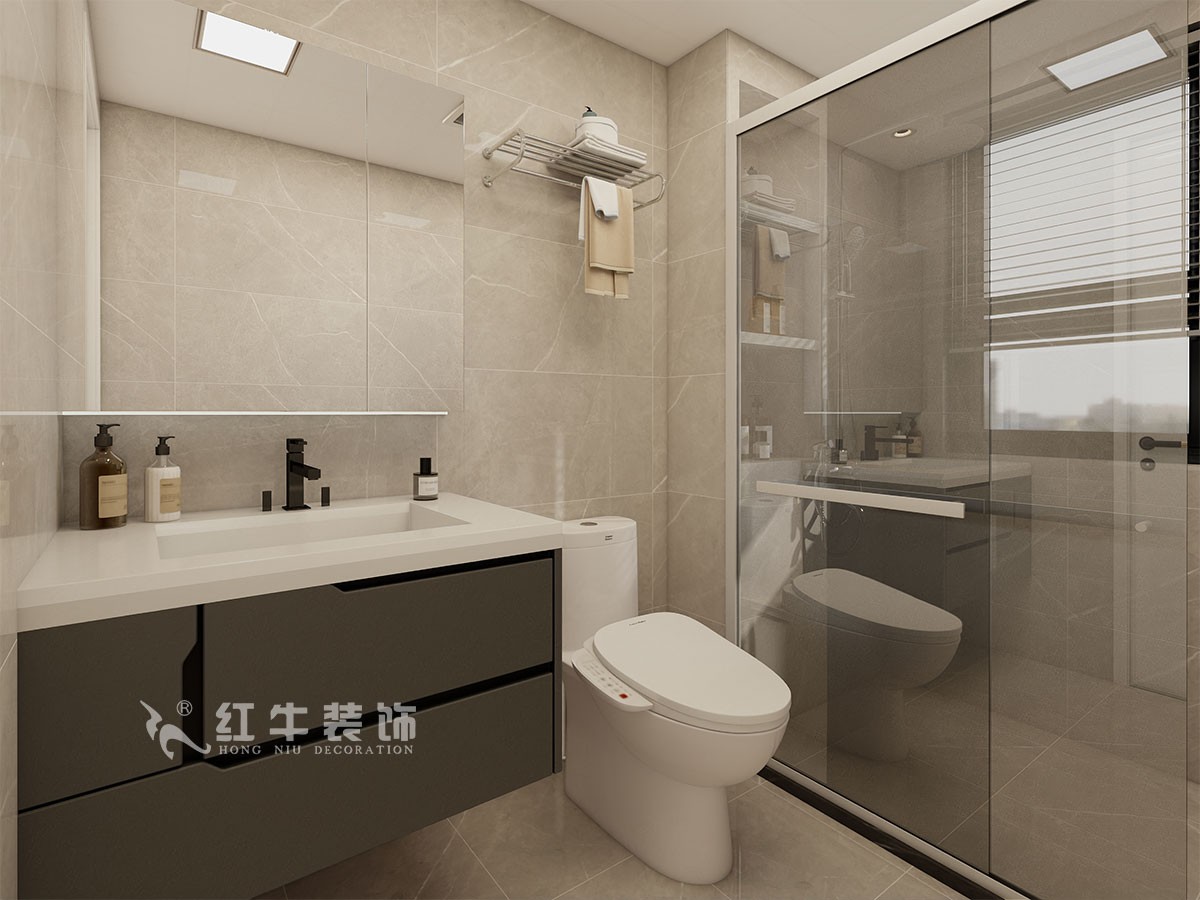 衛(wèi)生間簡潔實用的干濕分離設(shè)計,洗手臺盆、鏡柜、浴室柜,為使用者提供了一個精致、優(yōu)雅的洗浴體驗。