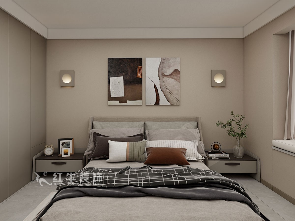 臥室說明:搭配大面積的咖色定制衣柜,床頭的光源以多種形式呈現(xiàn),既滿足不同燈光需求,又恰到好處地起到了裝飾效果,使整體臥室空間呈現(xiàn)柔亮、溫柔的舒適狀態(tài)。