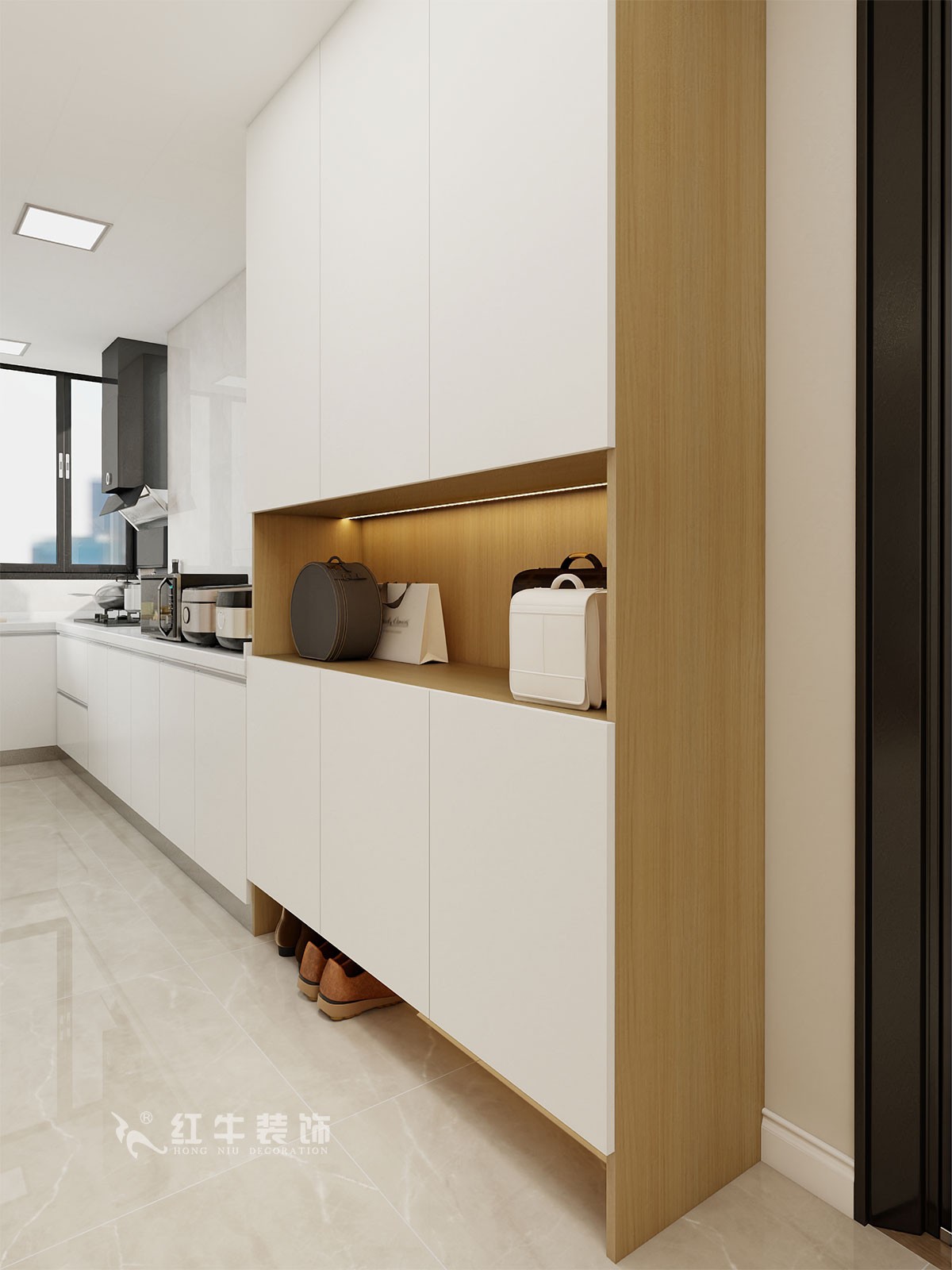 客戶是一家三口,原始戶型比較方正,沒有做大的改動,原始餐廳很小,經(jīng)過溝通,客戶表示不需要餐桌,平時吃飯就在沙發(fā)上已經(jīng)很習慣了。餐廳跟廚房合并后,廚房功能齊全,使用也很方便。整個裝修風格簡潔溫馨。
