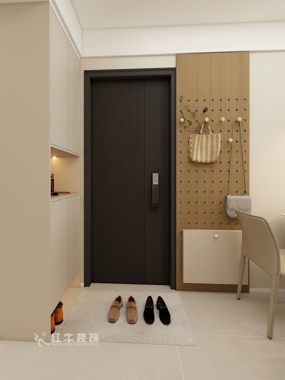 餐廳說明:餐廳改進(jìn)門左手邊,入戶做了換鞋凳加洞洞板,也提升了適合家庭的生活質(zhì)量。