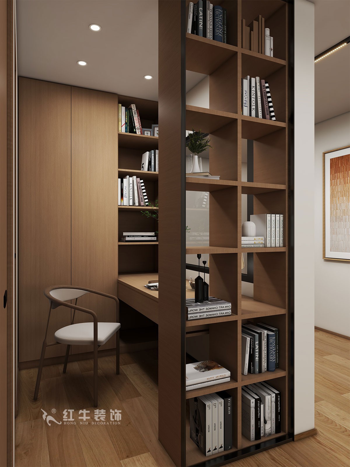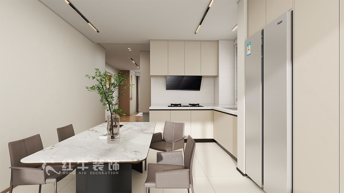 一家三口居住,主要考慮小孩上學住的,戶型不是很規(guī)整,過道狹長,進門視覺擁堵。主臥和次臥空間大小進行了重新規(guī)劃,原先的餐廳區(qū)域做了開放式書房。廚房、北邊臥室、北陽臺考慮光線不好,全部拆掉,連著廚房,做了廚房餐廳一體化的設計,使整個空間利用率更高。不僅美觀,還兼顧了功能性和實用性,滿足了業(yè)主的儲物的需求。