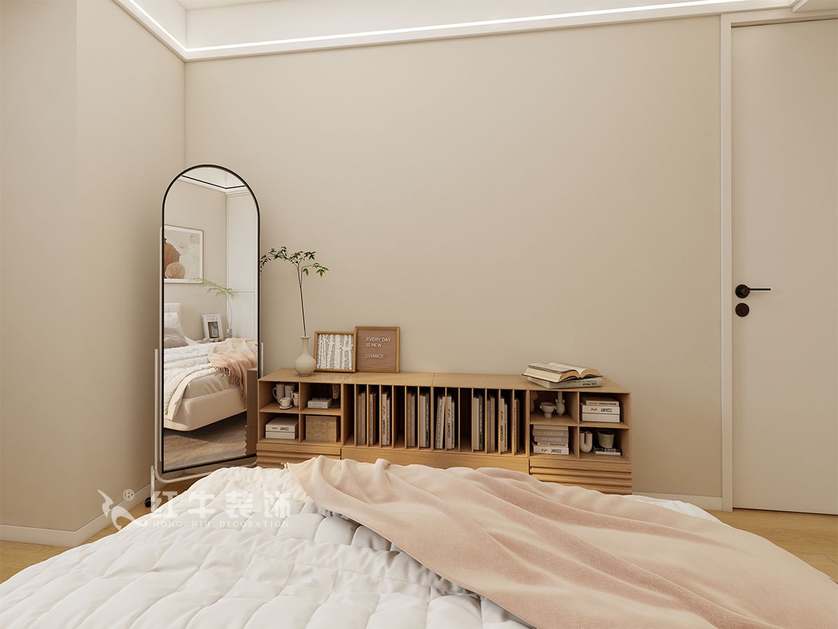 臥室說明:搭配大面積的白色定制衣柜,床頭的光源以不同形勢(shì)呈現(xiàn),既滿足不同燈光需求,又恰到好處地起到了裝飾效果,使整體臥室空間呈現(xiàn)明亮、溫柔的舒適狀態(tài)。