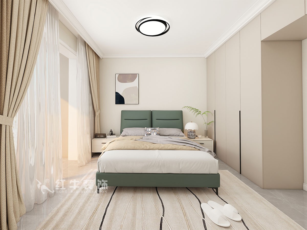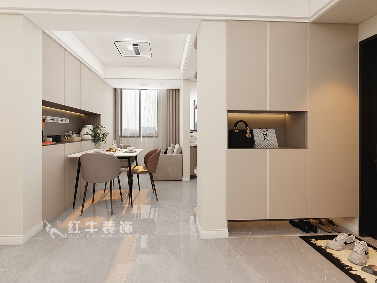 此案主要是改善裝修,在舒適度上要求比較高,臥室是整套房子中最私人也是最體現(xiàn)出溫馨休閑感的空間。在設(shè)計(jì)時(shí)體現(xiàn)出靜謐舒適的感覺(jué),并且與其他空間明顯的區(qū)別。減小廚房面積,打通北房間,變成餐廳,增加了鞋柜空間,有了單獨(dú)的客廳和餐廳空間。