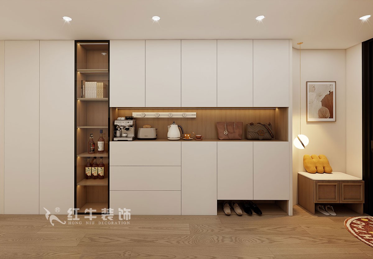 餐廳說(shuō)明:餐邊柜擴(kuò)充了廚房?jī)?chǔ)物的不足,也提升了適合家庭的生活質(zhì)量。