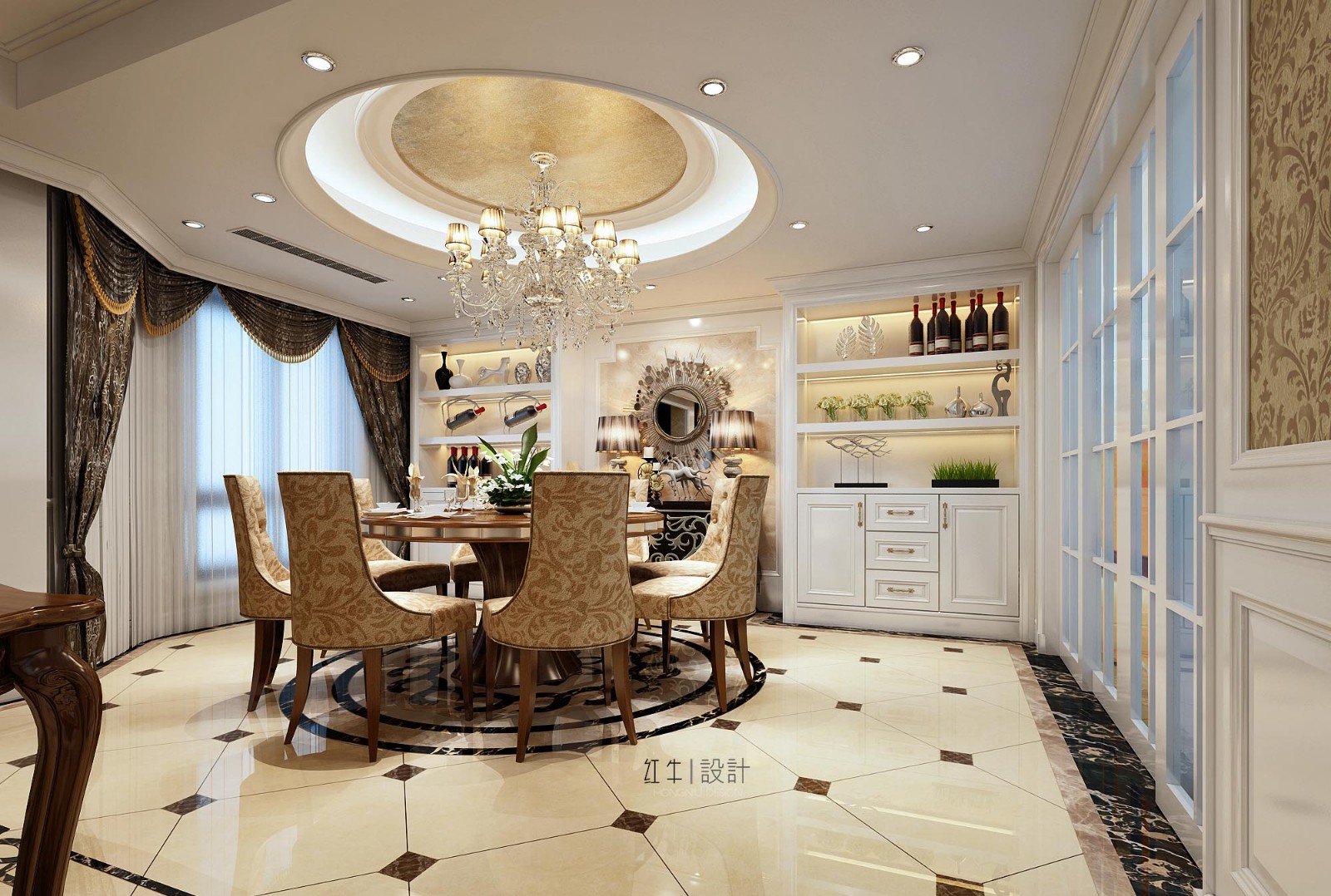 簡(jiǎn)約歐式風(fēng)格沿襲古典歐式主精華,融入現(xiàn)代生活元素,歐式風(fēng)格有的不只是豪華大氣,更多的是愜意和浪漫。通過(guò)完美的點(diǎn)線,精益求精的細(xì)節(jié)處理,帶給家人不盡的舒適觸感.本案中,設(shè)計(jì)師大膽使用了深色系的軟裝搭配,點(diǎn)綴以棕色的硬裝家具的呼應(yīng),再融合華麗的線條以及地面拼花,正迎合了歐式風(fēng)格強(qiáng)調(diào)以華麗的裝飾,濃烈的色彩,精美的造型打到雍容華貴的效果。餐廳的金箔頂面和電視背景墻的暖色大花墻紙,更從新古典的尊貴感上為空間增色不少。