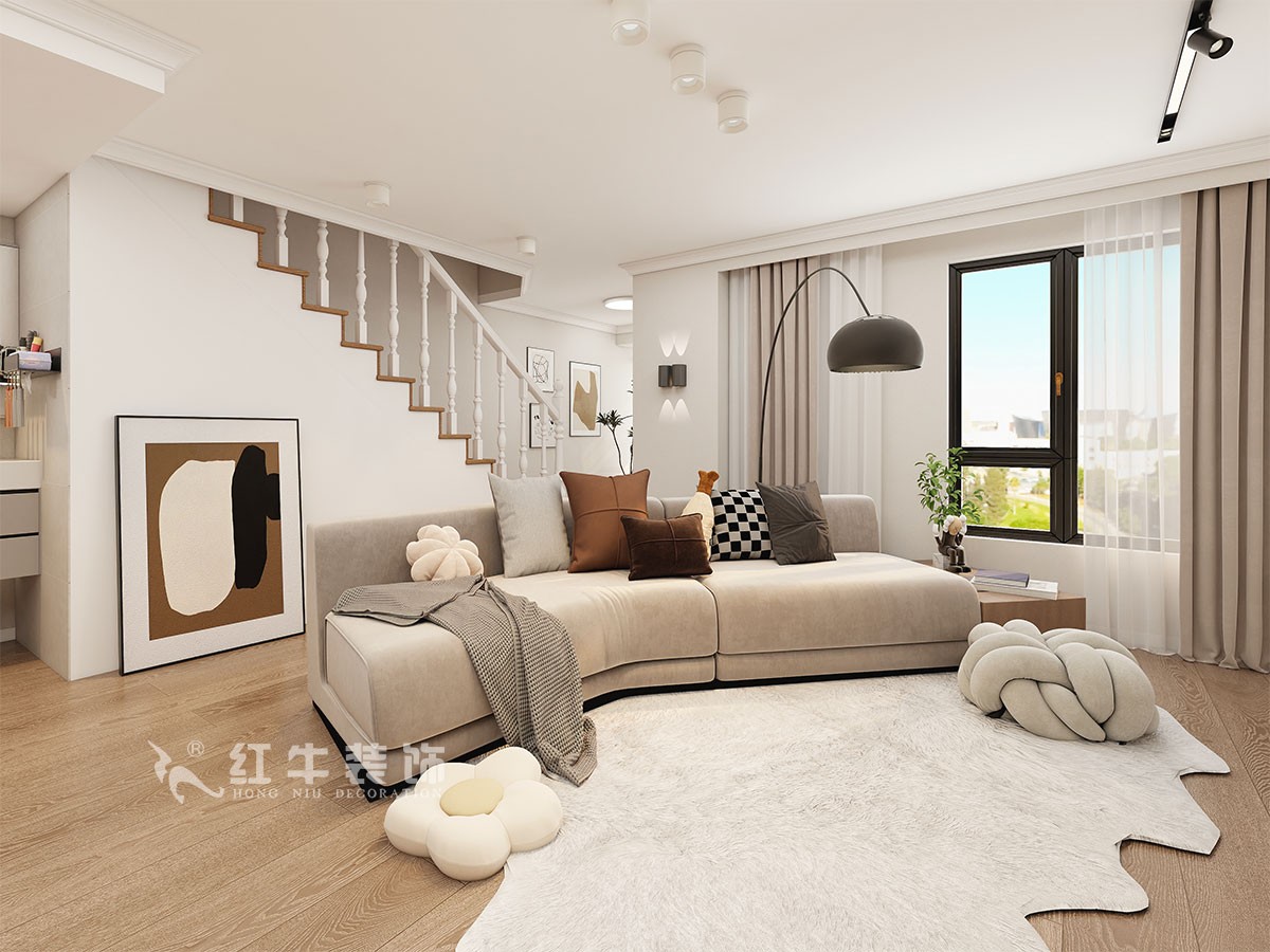 空間布局:一層為開(kāi)放式設(shè)計(jì),客廳、餐廳、廚房融為一體,二層為私密臥室和書(shū)房,充分利用loft的層高優(yōu)勢(shì)。