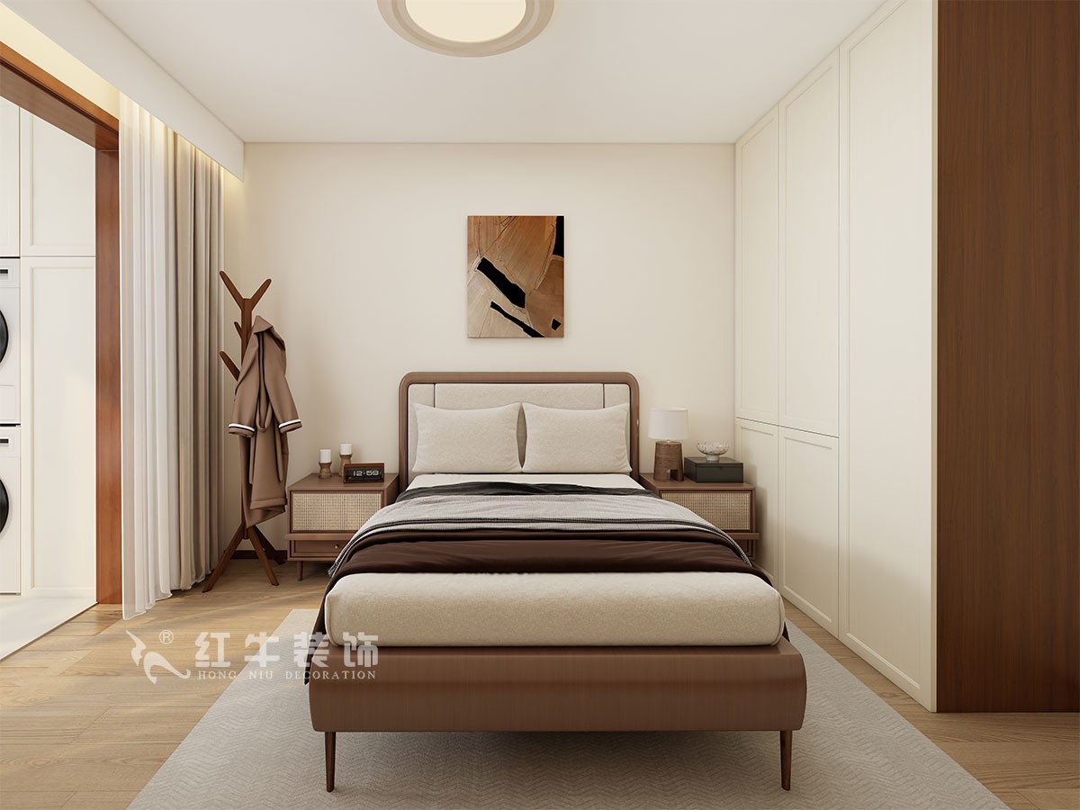 整體裝修簡(jiǎn)潔明快,沒(méi)有過(guò)多的裝飾,增加了入戶(hù)的儲(chǔ)藏柜,小臥室以?xún)?chǔ)藏功能為主,兼顧了客房功能。