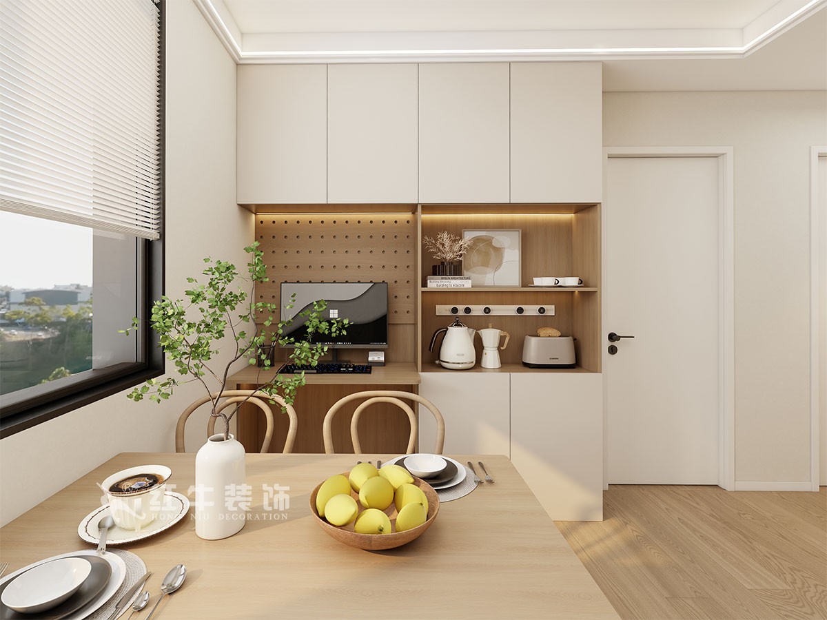 客戶一對夫妻帶一小男孩居住。原始戶型為小三房,比較方正,布局相對合理,原始廚房門對著入門鞋柜偏小,影響廚房布局,現(xiàn)把廚房門改到側(cè)面,布局更合理。餐廳增加辦公空間功能更完善,居住更舒適。