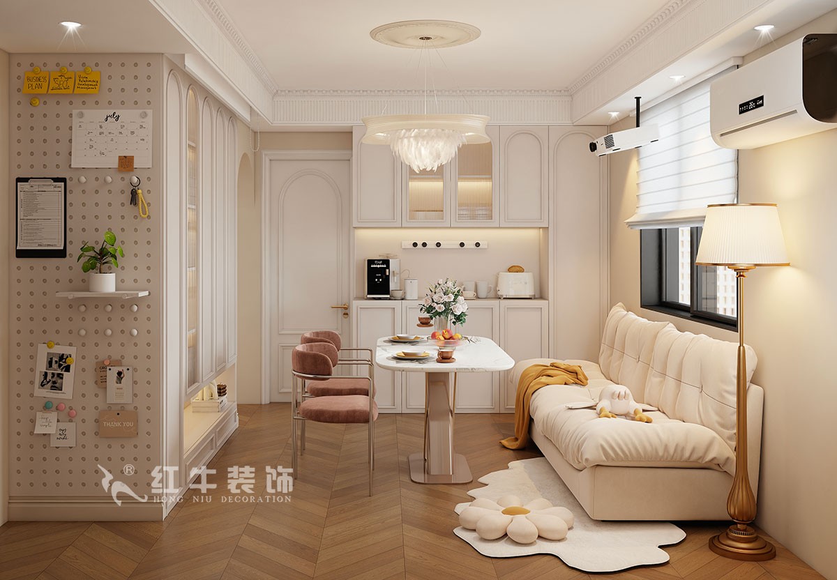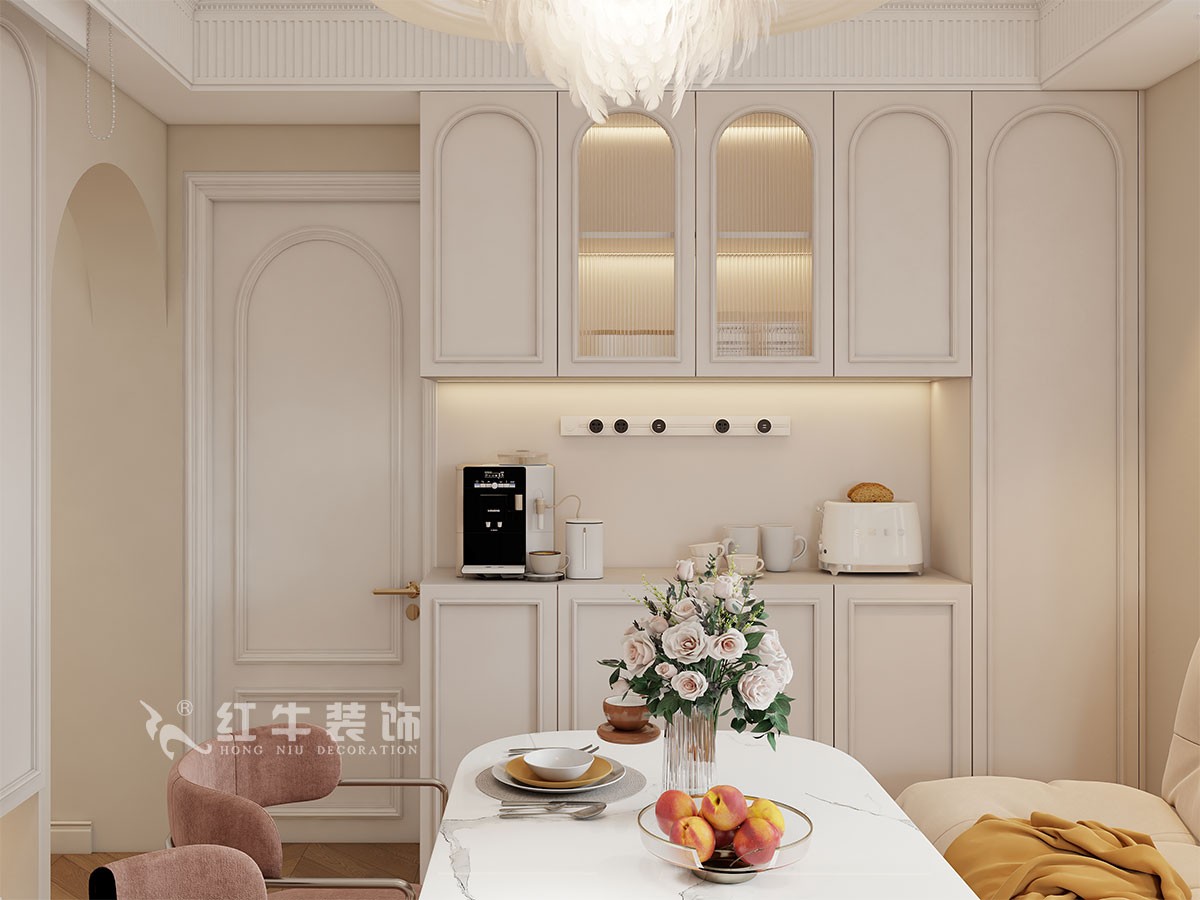 客餐廳空間很規(guī)整,通過細(xì)節(jié)的處理打造輕松舒適的輕法式風(fēng)居家環(huán)境。