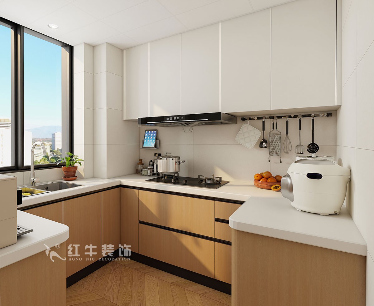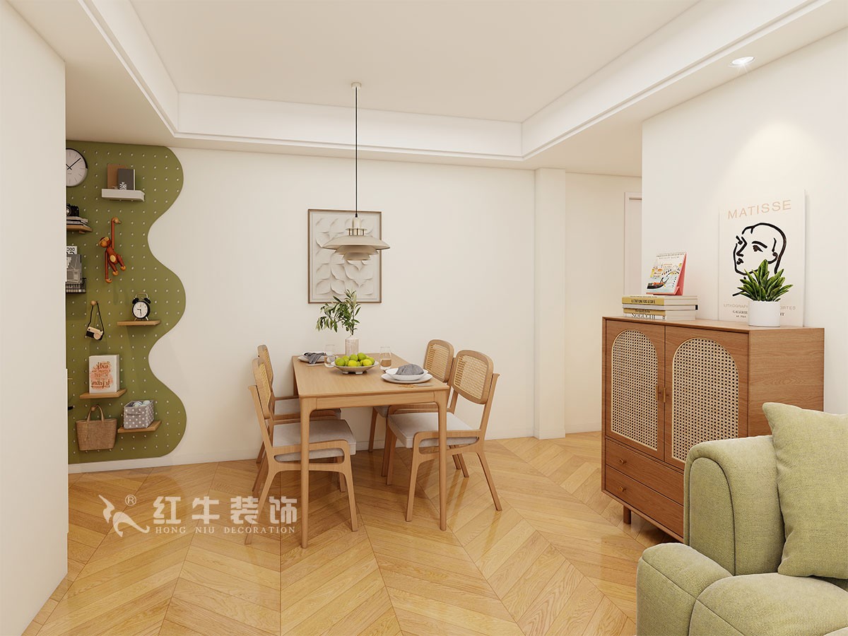 房子戶型簡(jiǎn)單,最主要的是考慮冰箱的擺放,通過過道的利用,把冰箱內(nèi)嵌了墻體,空間更整潔。
