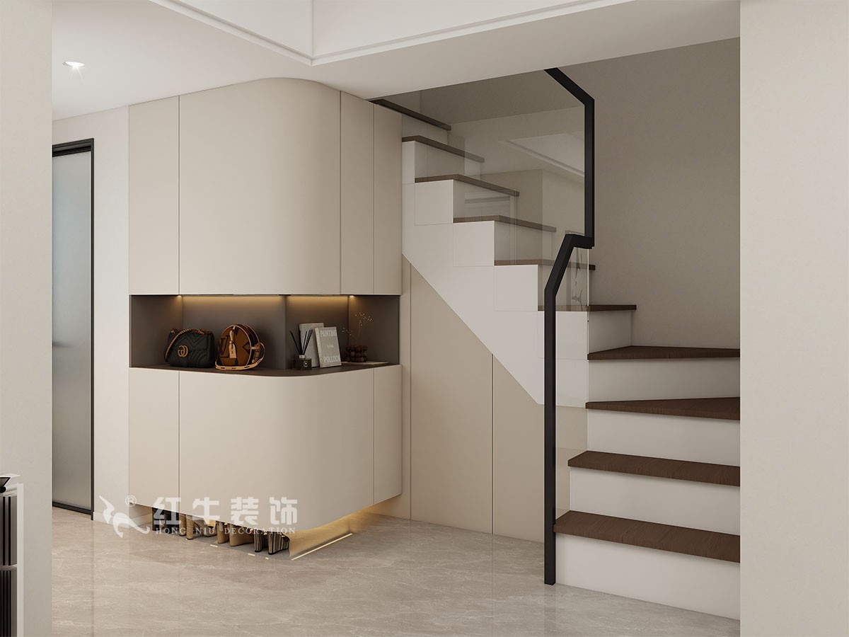 把圖紙變?yōu)楝F(xiàn)實(shí),效果圖里空間動(dòng)線的設(shè)計(jì),樓梯的設(shè)計(jì),定制柜,家具的擺放、配色等在實(shí)景中完美落地。