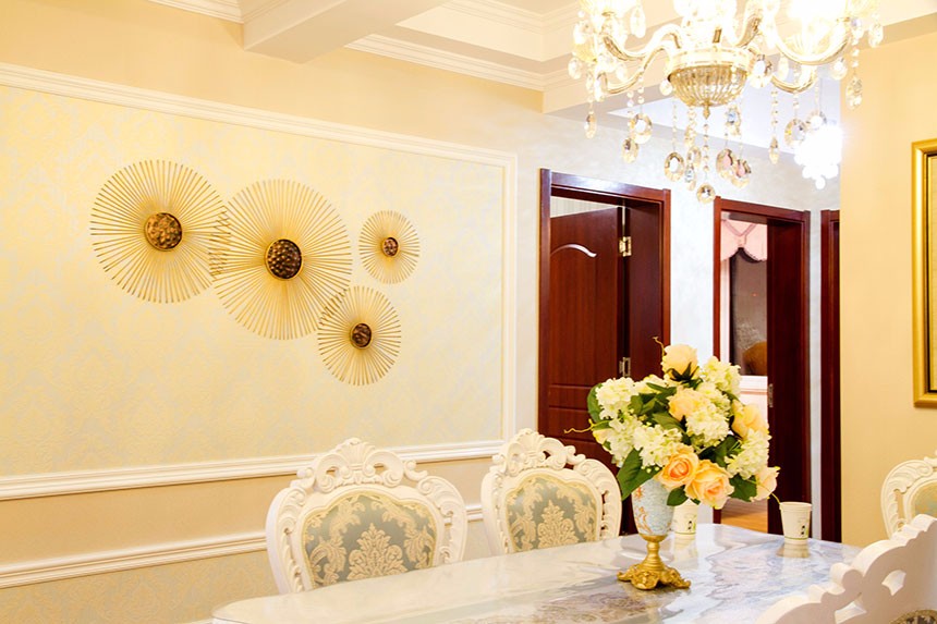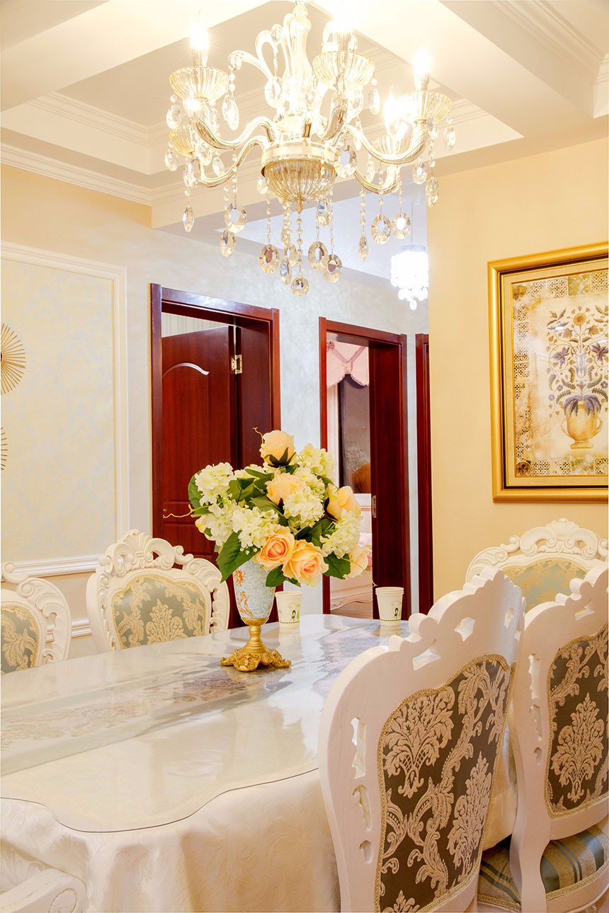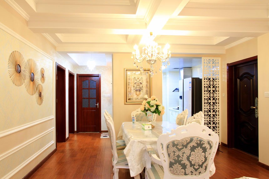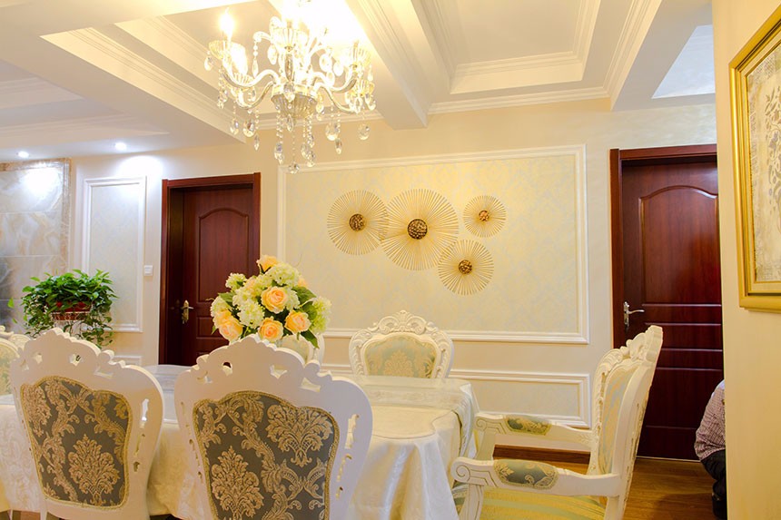 客餐廳采用線條,配以的石材點(diǎn)綴,拓寬客餐廳區(qū)域的空間感。墻面采用對稱的實(shí)木線條,與頂面的十字石膏線相呼應(yīng),不同材質(zhì)的組合營造尊貴典雅的生活品質(zhì),細(xì)膩的詮釋了空間的浪漫魅力。