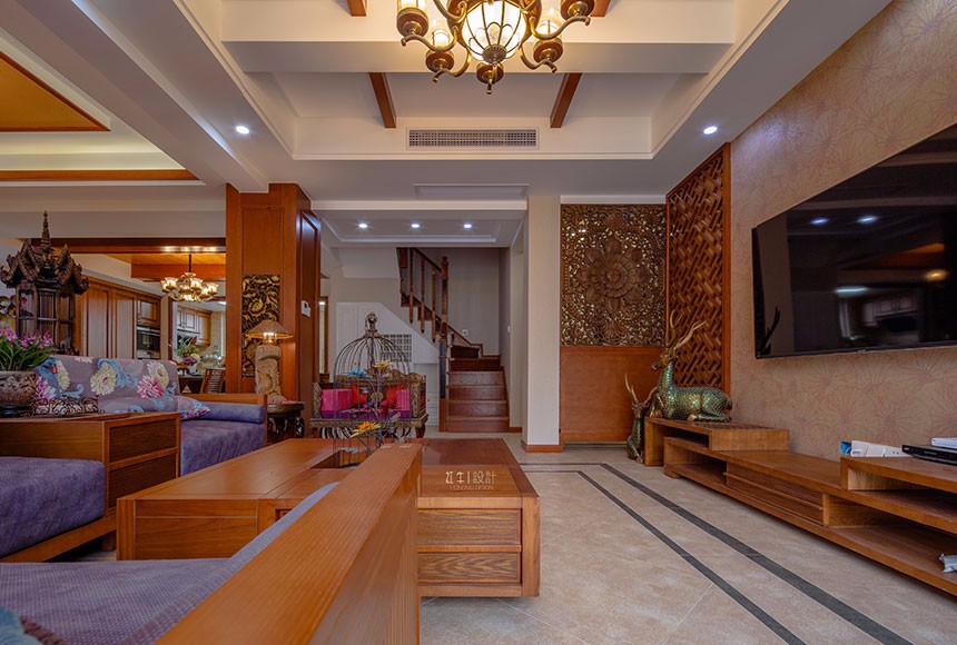 本案為東南亞風格,該風格極其崇尚自然、原汁原味,作品中也充分展現(xiàn)出東南亞風情的魅力。