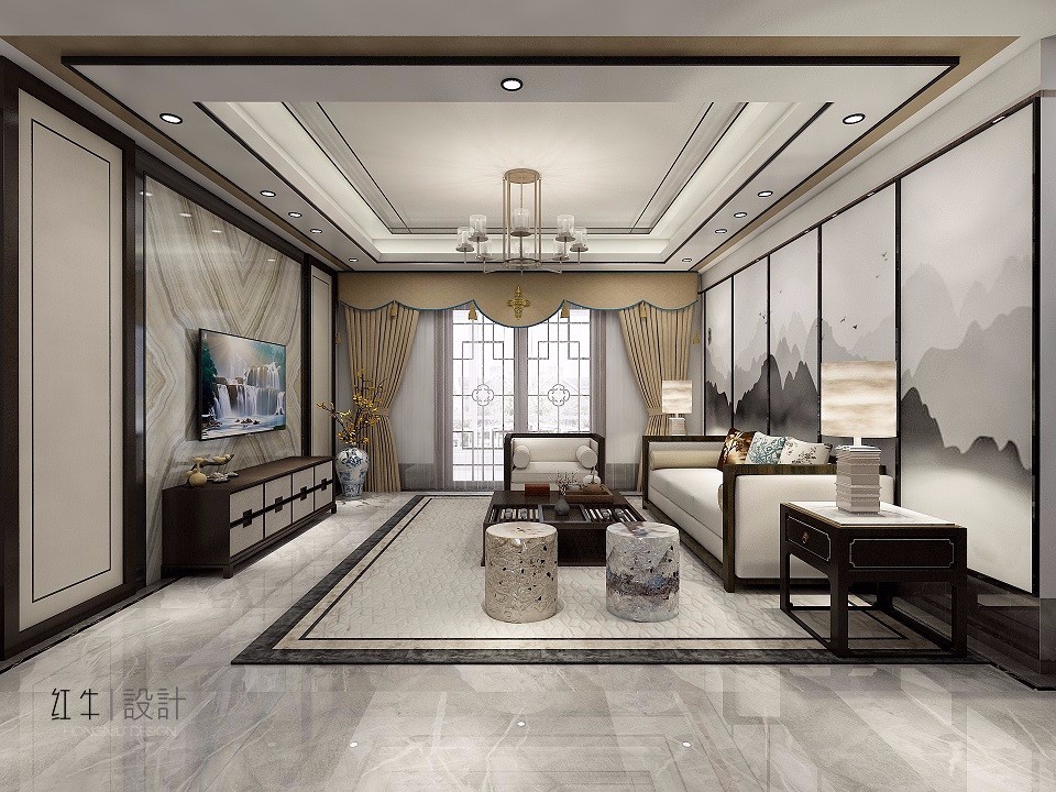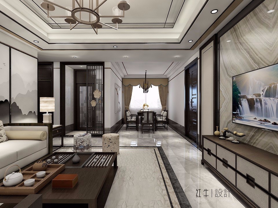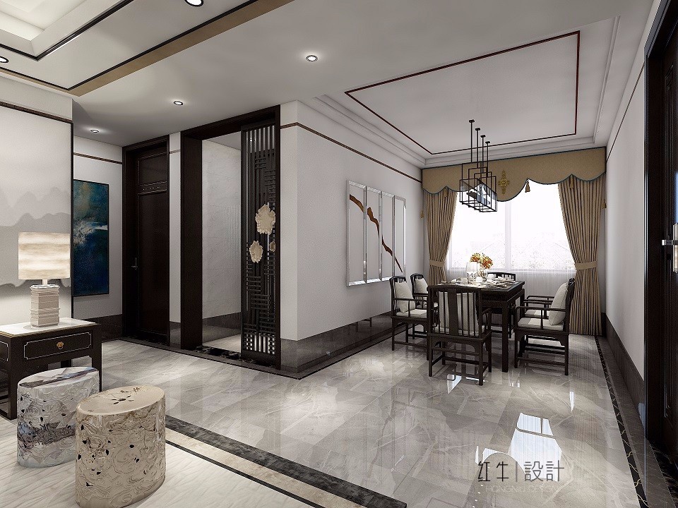 本案應(yīng)業(yè)主要求做了一個(gè)新中式風(fēng)格,在設(shè)計(jì)思考上,多采用對(duì)稱布局方式,格調(diào)高雅,造型簡(jiǎn)樸優(yōu)美,色彩濃重二成熟。其實(shí)新中式的定義比較廣泛本案我在形態(tài)和色彩的運(yùn)用上主要以表達(dá)清雅含蓄,端莊豐華的東方式精神境界的追求。