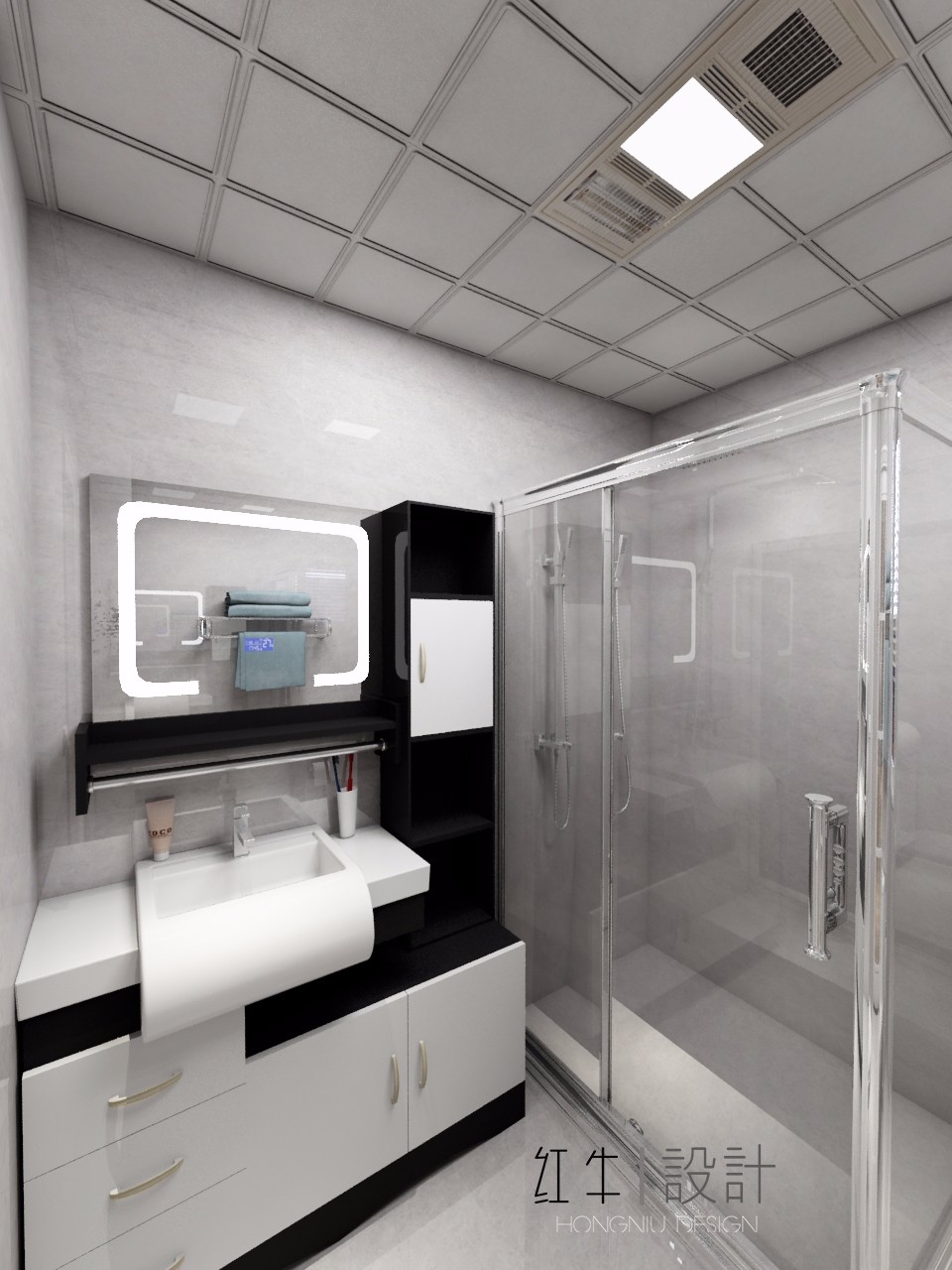 黑白配是最經(jīng)典的色彩搭配,卻總能不斷創(chuàng)造出時髦前衛(wèi)的流行感,本案中就用在了浴室柜上。