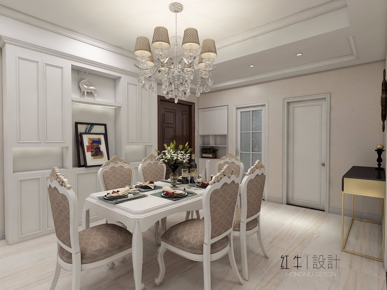 吊燈是歐式住宅常用水晶燈樣式,讓餐廳環(huán)境顯得華麗起來。白色餐桌搭配綠色餐墊非常合適,產(chǎn)生一種清新、明凈的感覺。