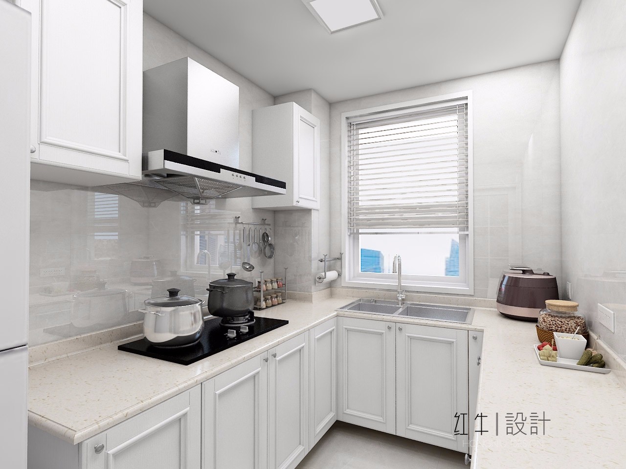 從設(shè)計(jì)看廚房是U型設(shè)計(jì),洗滌區(qū)、烹飪區(qū)及操作臺(tái)劃分明確,動(dòng)線無縫銜接,能減少物品拿取往復(fù)的時(shí)間,給下廚的人帶來方便。
