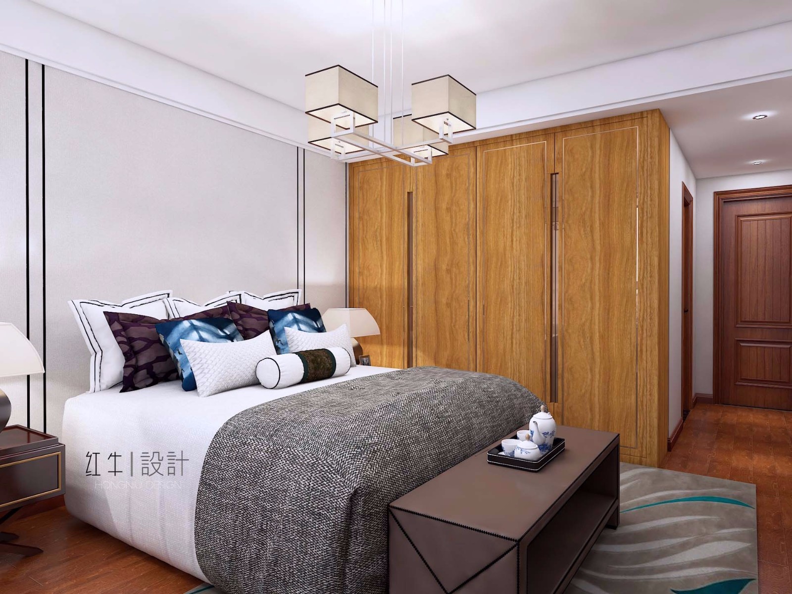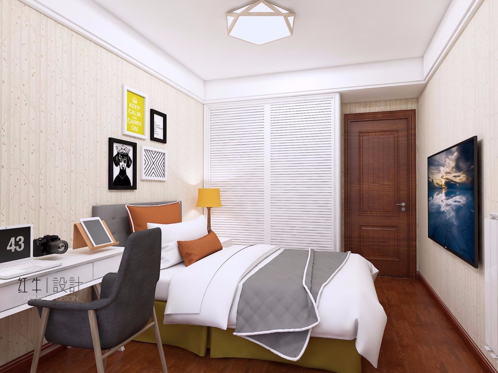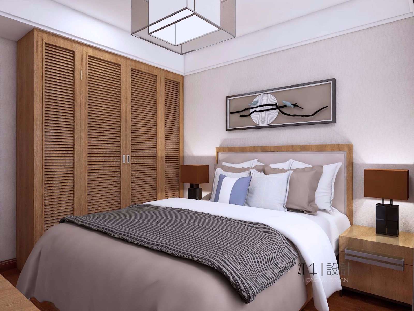 臥室燈具都是方形的,比如吊燈、臺燈,搭配上方形的衣柜、床、床頭柜、裝飾畫,協(xié)調(diào)感就出來了。