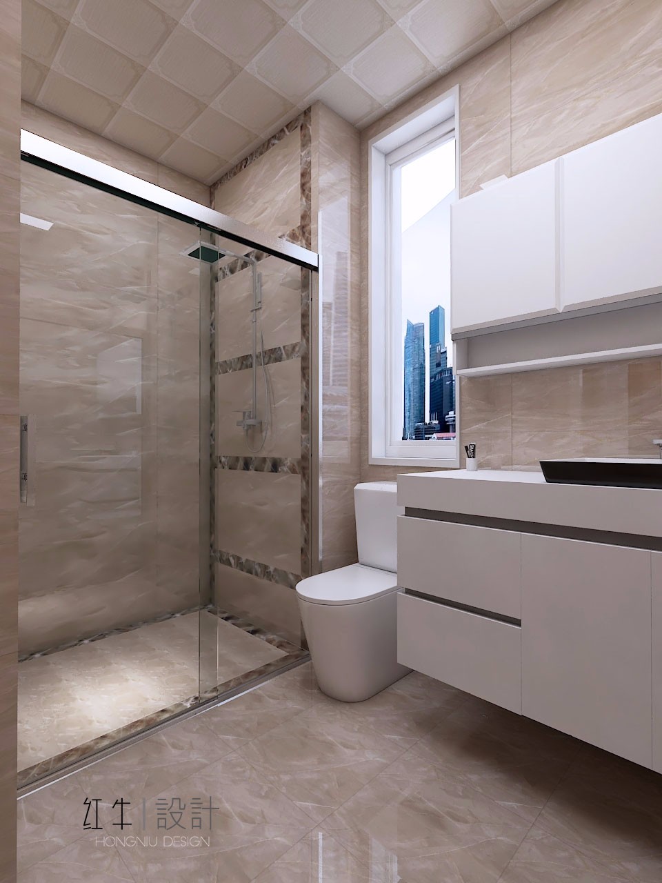 濕區(qū)加了一圈細(xì)細(xì)的波打線,讓原本單調(diào)的空間富于變化,還能干濕區(qū)進(jìn)行劃分。
