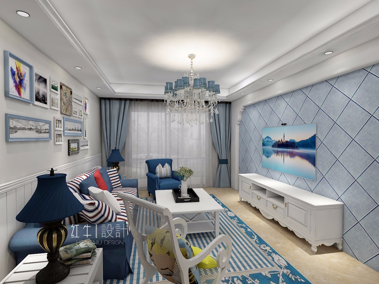 本方案是以地中海風(fēng)格為主,是一家三口居住, 對于地中海風(fēng)格的設(shè)計來說,白色和藍(lán)色是兩個主打,給人一種陽光而自然的感覺。
