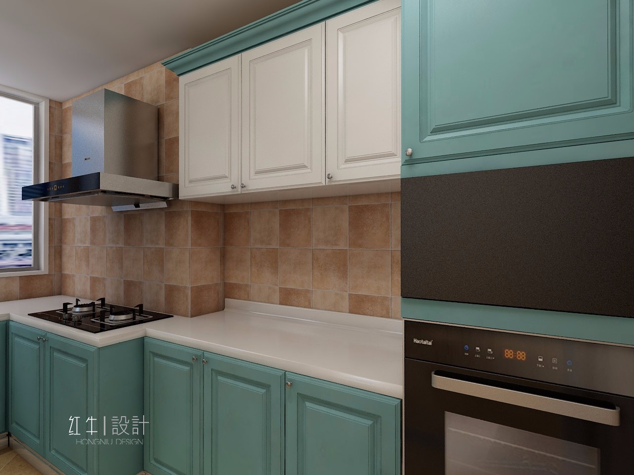 櫥柜柜門的顏色決定了整個廚房的色調(diào),給燥熱的廚房空間帶來一絲清涼。
