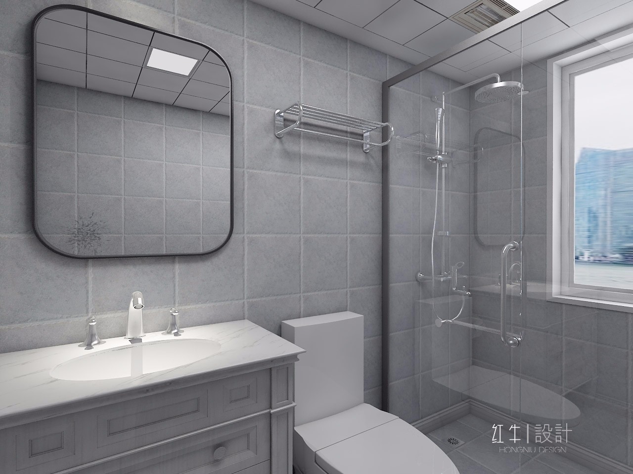 在這間衛(wèi)生間里,第一眼就注意到了圓角的矩形浴室鏡,使用這樣的鏡子可以避免被邊角弄傷,而且這樣邊角也不容易磨損。