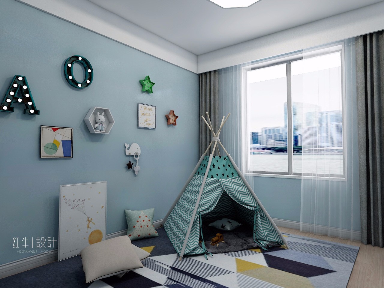 兒童房的藍色墻壁,清新養(yǎng)眼。
