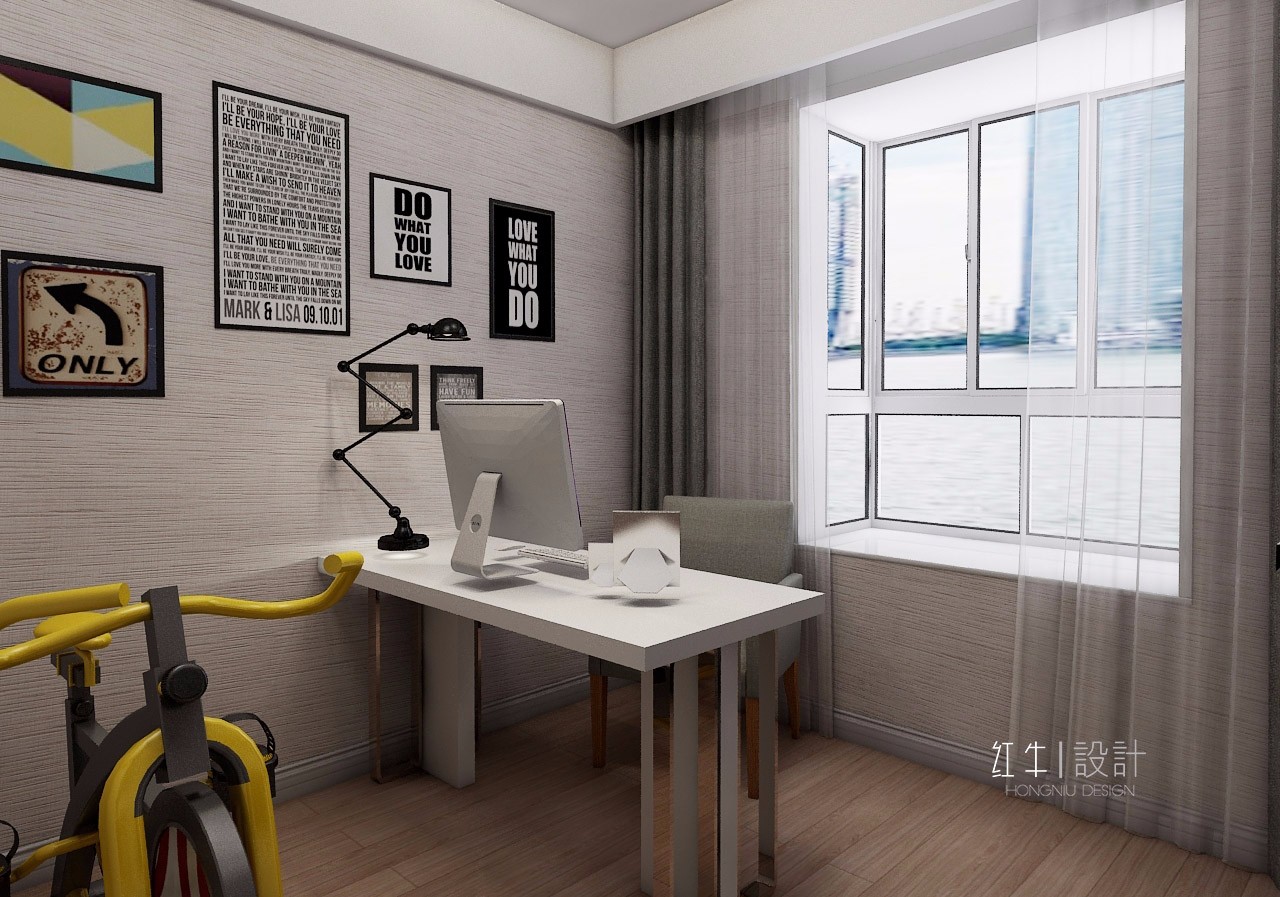 書房除了工作上網(wǎng)之外,還可以踩一踩動感單車,包含了健身房的功能。