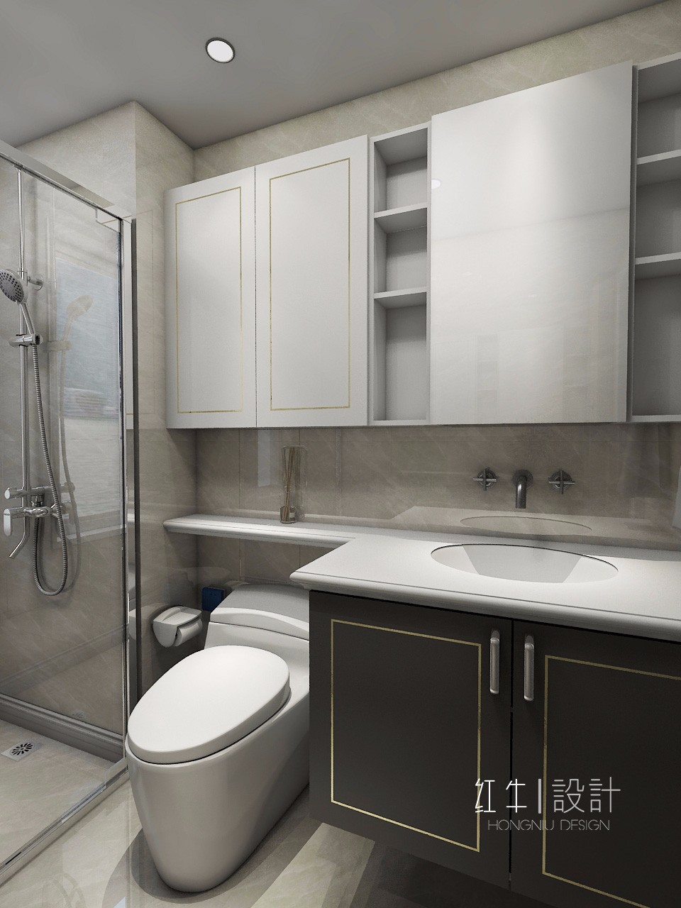 半堵墻的設(shè)計,不僅可以實現(xiàn)干濕分區(qū),還可以讓衛(wèi)生間看起來更加開闊。