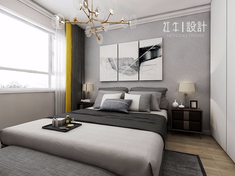 客餐廳色調(diào)清雅,休閑、隨性又不失精致,電視背景墻沒有過多的華麗修飾,給空間本身一個(gè)開拓、延展性,給居住者一個(gè)慵懶、明快的起居環(huán)境。主臥次臥,依靠家具本身的線條感,搭配同樣風(fēng)格的裝飾畫,給人以休閑自在的視覺感受。書房是辦公空間,設(shè)計(jì)者在整面墻留畫,一條小路通向遠(yuǎn)方,給了本就不大的空間一個(gè)視覺的開放性,心情也自然就舒緩很多。