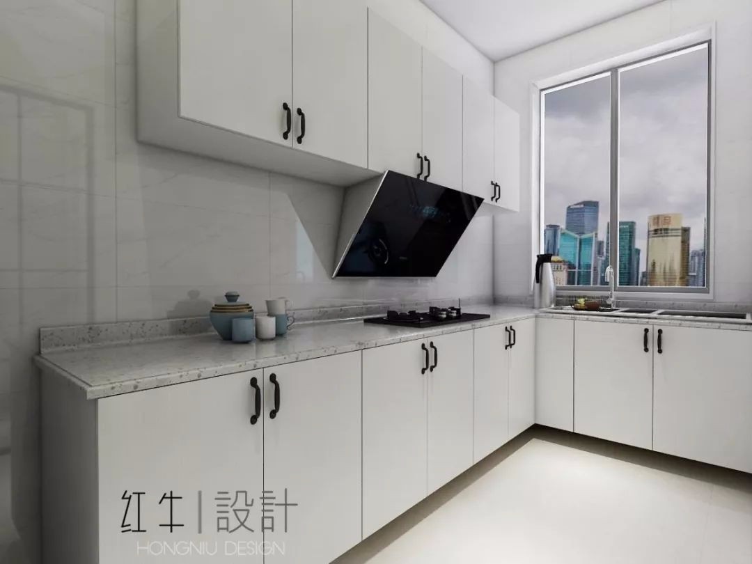 “L”型設計,水池與灶臺不在同一條線上,操作更加合理,洗菜槽也不是原來的單槽設計,便于分類清洗。