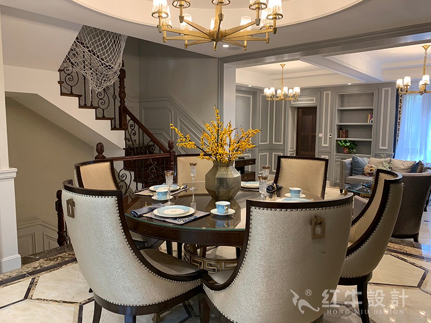 本案的設(shè)計(jì)從簡(jiǎn)單到復(fù)雜、從整體到局部,精雕細(xì)琢、鑲花刻銀,都給人一絲不茍的印象。一方面保留了材質(zhì)、色彩的自然風(fēng)格,讓人感受到傳統(tǒng)的歷史痕跡與渾厚的文化底蘊(yùn)。同時(shí)又摒棄了過于復(fù)雜的肌理和裝飾,簡(jiǎn)化了線條。將懷舊的浪漫情懷與現(xiàn)代人對(duì)生活的需求相結(jié)合,兼具華貴典雅與時(shí)尚現(xiàn)代。