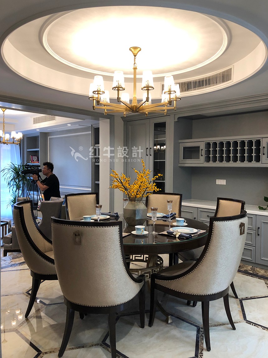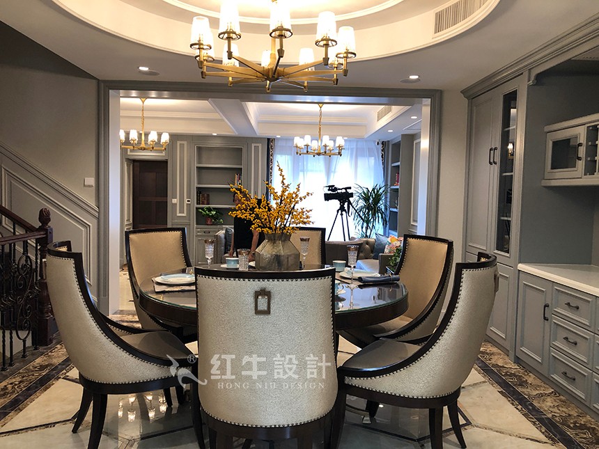在整個(gè)空間的立面效果上,實(shí)用和美觀相結(jié)合。設(shè)計(jì)了很多的柜子,包括客廳的裝飾柜和餐廳的餐邊柜,不但可以更好地體現(xiàn)出美式風(fēng)格,同時(shí)也把空間利用得恰到好處。