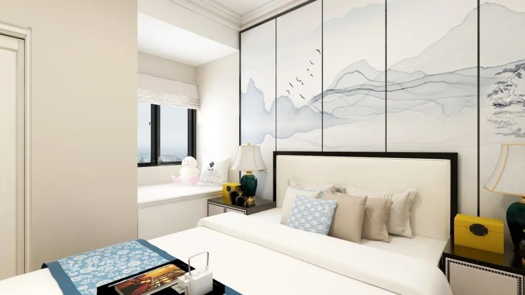 方正家具給人的感覺就是安定、大氣,黑白配色,帶來時(shí)尚感。硬包壁畫是水墨元素的現(xiàn)代表達(dá),凸顯中式內(nèi)涵。