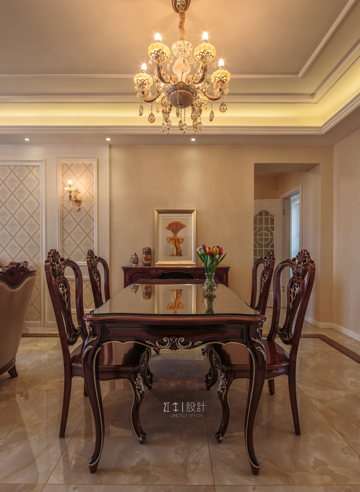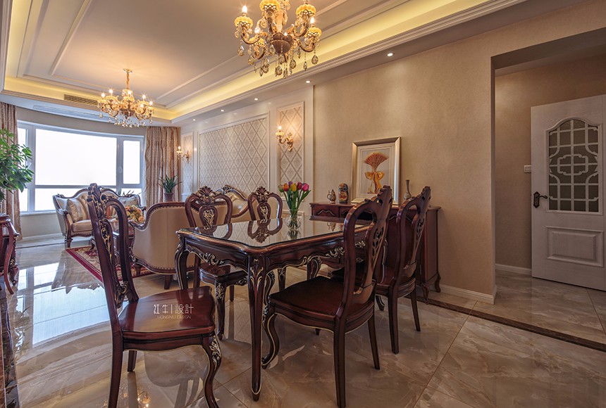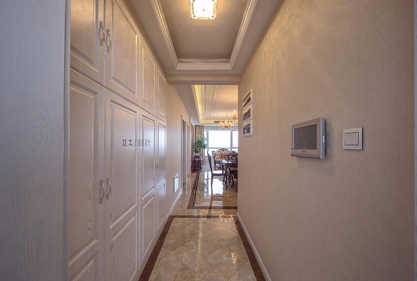 分享和交流是本案的精髓。初次溝通,此案是祖孫三代同住,業(yè)主為中年人,經(jīng)常去歐洲國家出差,對歐洲文化獨有情鐘,所以此案有效的利用空間、并用簡約明快的造型及色彩以突顯空間及功能的延續(xù)性,并融合歐式的裝飾元素及裝飾色彩。設(shè)計中的造型呼應(yīng)的技巧,頂面造型和地面材質(zhì)造型的相互呼應(yīng),沙發(fā)背景和電視背景造型的相互呼應(yīng),門廳造景和餐廳造景的相互呼應(yīng),運用多組呼應(yīng)的設(shè)計技巧,像作文章的排比句,把整個空間貫穿起來,使得氛圍更加濃烈,整體性更加統(tǒng)一。打造出一個共享、時尚、典雅的居住空間。