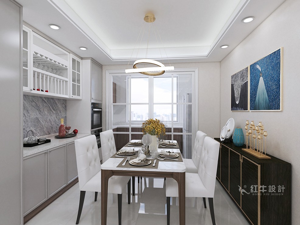 本戶型是四室兩廳兩衛(wèi)的戶型,目前客戶一個人住,考慮后期結(jié)婚,三代人的居住情況。原來結(jié)果,餐廳空間比較小,廚房空間略大,經(jīng)過和客戶的溝通,把餐廳的空間縮小,餐廳空間變大,同時也調(diào)整了餐廳后面空間的房間,餐廳增加了餐邊酒柜的位置,后面的房間設計成書房。