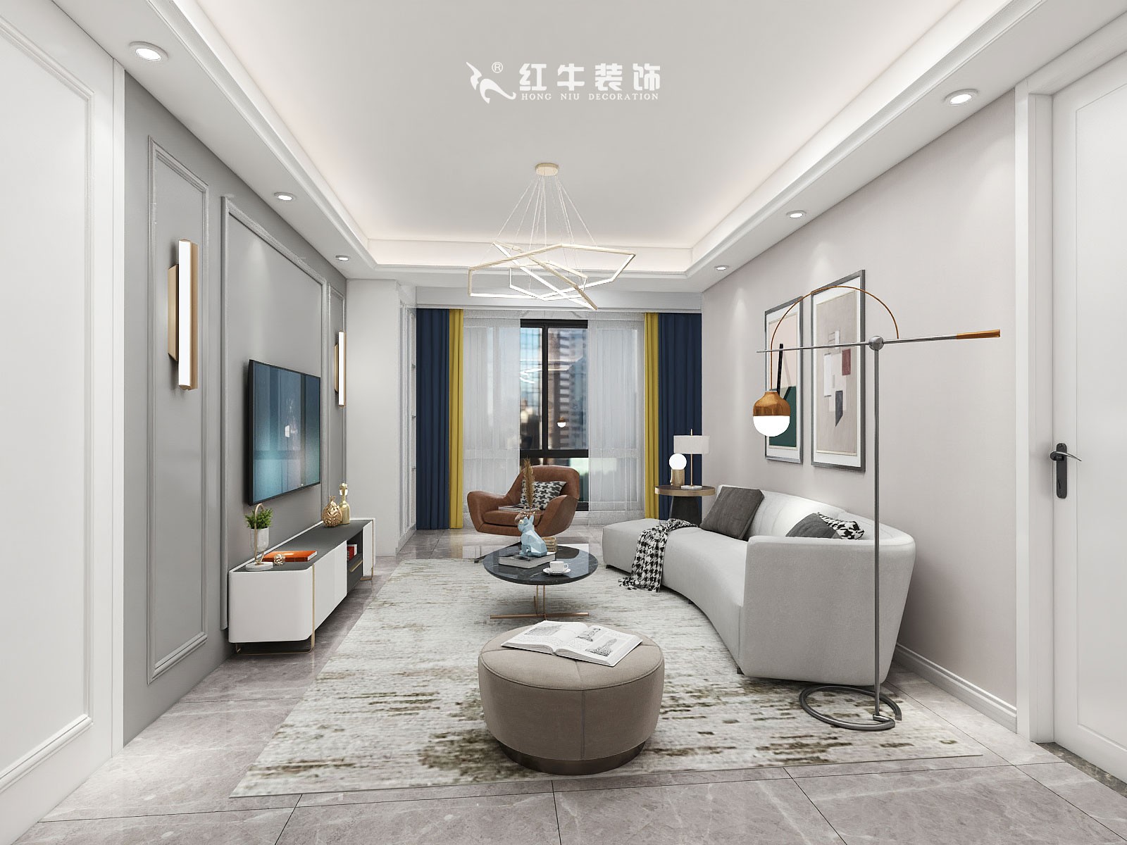 顧娟_金地都會(huì)意境118㎡現(xiàn)代風(fēng)格--弧形沙發(fā)設(shè)計(jì),獨(dú)特有創(chuàng)意!01客廳