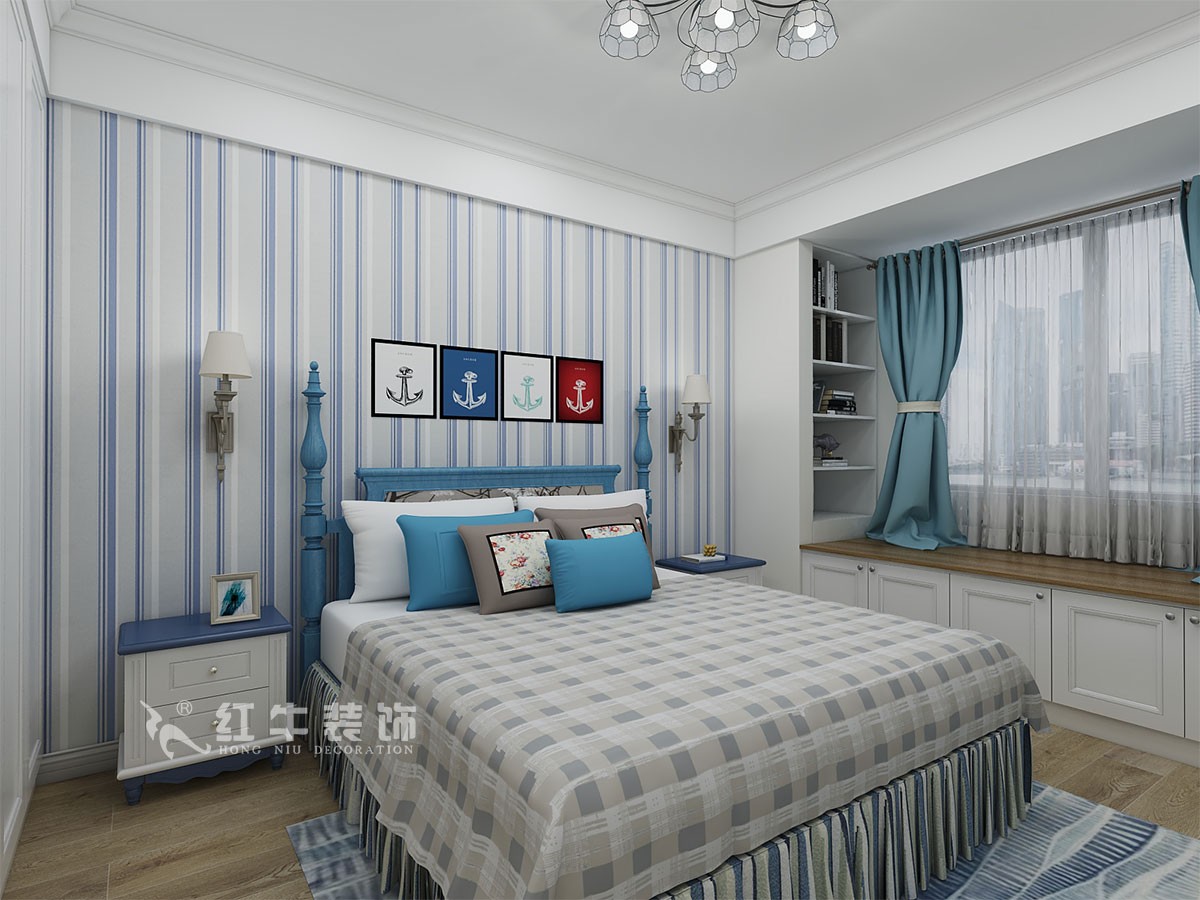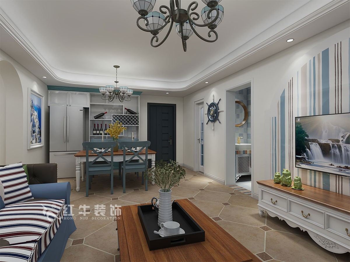 本戶型是三室兩廳兩衛(wèi)的戶型,客戶房子是做為婚房使用,見遍了鋼筋混凝土的灰色,業(yè)主回到家里希望可以舒緩內(nèi)心的壓力,回到家里就仿佛到了港灣一樣,藍(lán)白色家具仿佛是藍(lán)天與海浪一樣,暖色的墻面如同沙灘一樣,呆在家里就仿佛有呆在海邊的感覺。